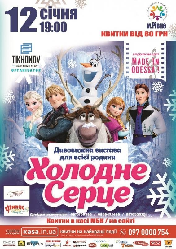 «Холодне серце» - це масштабна постановка від одеського продюсерського центру «Made in Odessa» - неймовірна вистава, створена за мотивами улюбленого однойменного мультфільму дітей всього світу, і самого касового за всю історію компанії «Walt Disney».