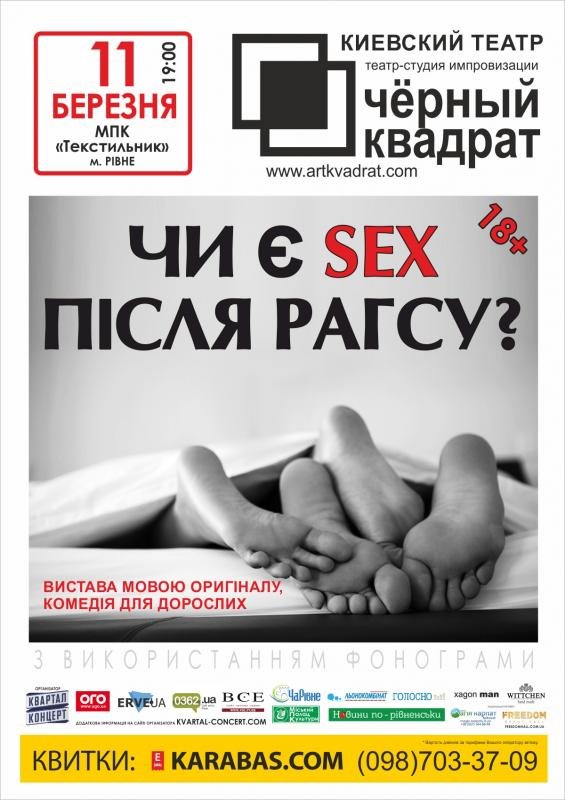 Чорний квадрат представляє ліричну комедію для дорослих «Чи є SEX після РАГСу» (Special Edition) 11 березня о 19.00 в міському палаці культури