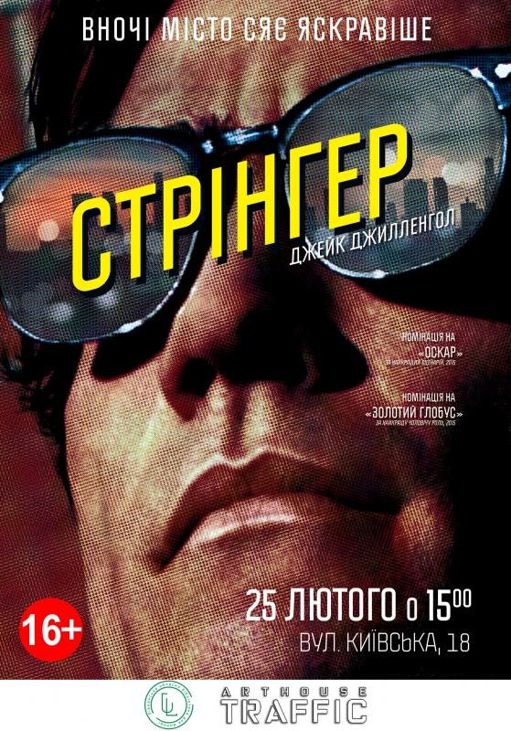 У неділю, 25 лютого, о 15.00 в Рівненській обласній бібліотеці для молоді (вул. Київська, 18) відбудетьсяперегляд кримінального трилера «Стрінгер» або українською «Стерв’ятник» (США, 2014), знятого режисером-дебютантом Деном Гілроєм за власним сценарієм. Головні ролі виконали такі зірки американського кіно як Джейк Джилленхол і Рене Руссо.