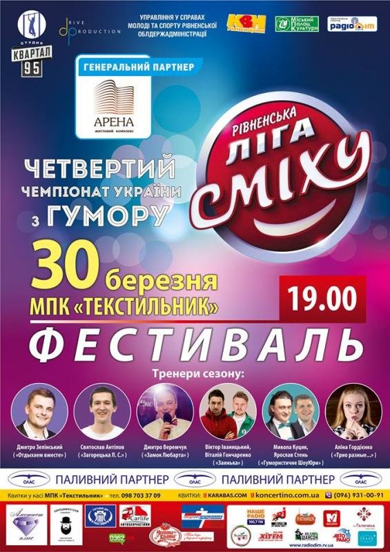 У фестивалі Рівненської Ліги Сміху, який стартує 30 березня, приймають участь команди зі Львова, Києва, Луцька, Камянець-Подільська, Івано-Франківська, Коломиї, Херсона, Вінниці, Ужгорода, Одеси та Рівного.