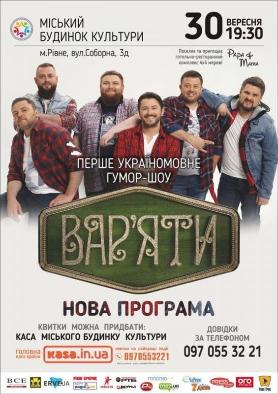 "Вар"яти-шоу" з Сергієм Притулою представлять для рівнян нову 2-годинну програму. Всі свої історії артисти беруть із власного життя. Вони не жартують про політику – тільки на побутові теми, зрозумілі кожному з нас. Саме завдяки цьому “Вар’яти” здобули народну любов і на їх виступи приходять цілими родинами.