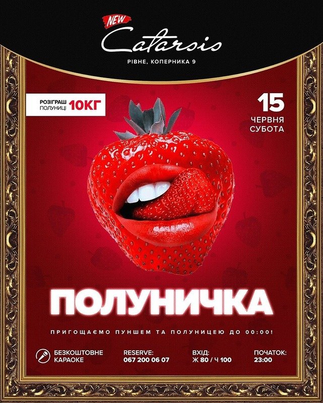 Ви готові зануритися в світ спокуси та задоволень? Тоді ласкаво просимо на вечірку "Полуничка" в клубі та караоке-ресторані#Катарсіс ❤️ ⠀