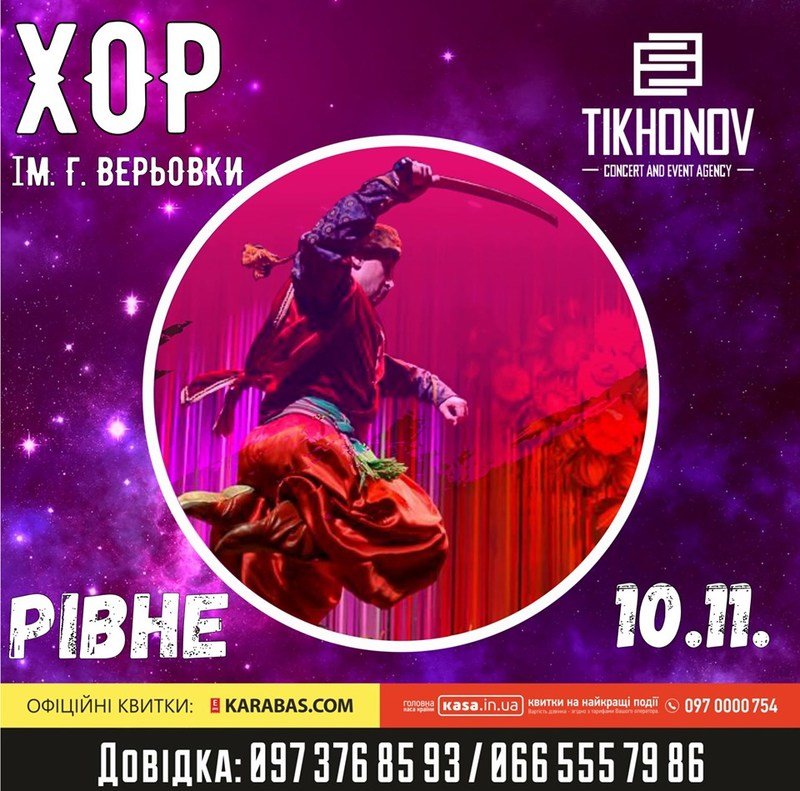 Національний заслужений академічний український народний хор України імені Григорія Верьовки - український професійний хоровий колектив, Заснований у 1 943 році у Харкові. Організатором і керівніком колективу був Григорій Верьовка. До першого складу хору увійшли 134 виконавці: 84 хористів, 34 артисти оркестру, 16 артістів балету. Від 1944 року колектив базується в Києві.
