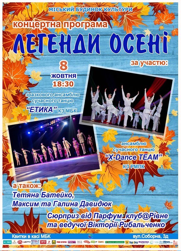 Не будемо зволікати і ми, адже вчимося у природи і намагаємося ввібрати в себе все найкраще. Тому новий танцювальний сезон “Етики”, який вони розпочали яскраво та активно, продовжать “Легенди осені” 8 жовтня о 18:30 год в Міському Будинку Культури.