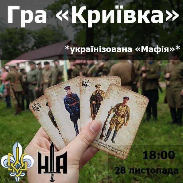 "Криївка" - українська версія загальновідомої гри "Мафія". Гра відтворює історичний епізод боротьби УПА проти агентів НКВС.