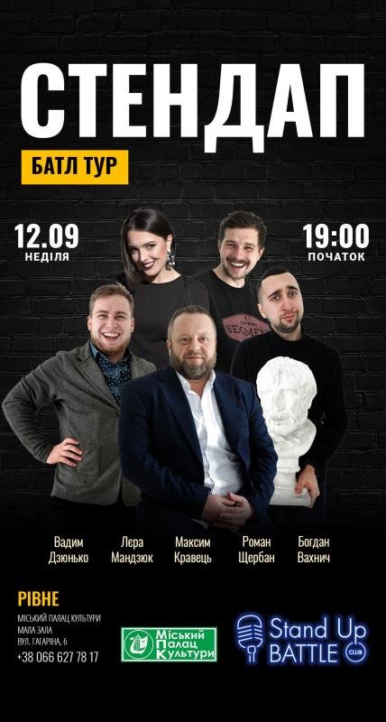 Stand Up Battle Club їде в тур! Що може бути краще, ніж дивитись виступи улюблених коміків та гучно сміятись з їх жартів? Наш ютуб і тік-ток канали стрімко розвиваються та популярність наших коміків поступово, але впевнено зростає. Найбільший україномовний ютуб канал зі стендапом частково ознайомив Вас з творчістю наших коміків, тепер ці та нові жарти ти можеш почути наживо у своєму місті. Пятеро чудових людей завітають у сім прекрасних міст нашої країни, де поділяться з вами своїми монологами.
