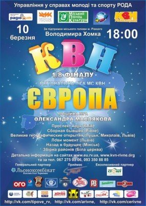 17 березня 2013 відбудеться 2 ГРА 1/8 ФІНАЛУ Регіональної ліги КВН "Європа".