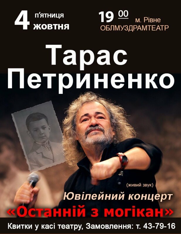 Цього року Тарасові Петриненку - народному артистові України, лауреату державної премії імені Тараса Шевченка, яскравому, харизматичному й потужному митцю - виповнилося 60! З нагоди ювілею Творча майстерня Тараса Петриненкаорганізовує ювілейний тур «живої легенди» української пісні містами України. До концертної програми увійшли як пісні, що вже стали класикою, так і нові твори співака, композитора і поета.