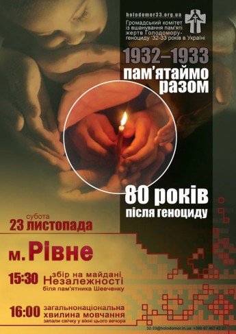 23 листопада 2013 р. Україна та світ згадають мільйони вбитих геноцидом. 80-ті роковини Голодомору: Рівне пам'ятає...