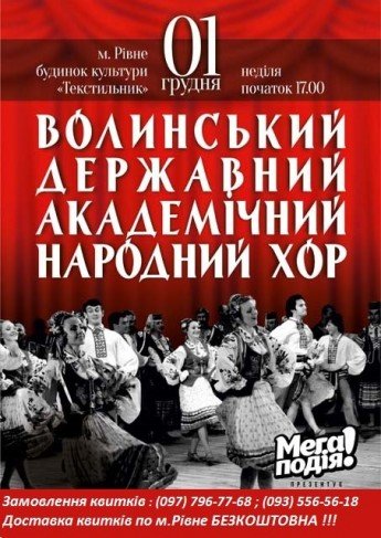 За роки існування Волинський народний хор провів більше трьох тисяч концертів як в Україні, так і за її межами. З великим успіхом Волинський народний хор гастролював по всій території Росії, в Казахстані, Білорусії, Узбекистані, Грузії, Азербайджані, країнах Прибалтики.