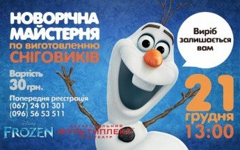 З нагоди казкової Прем'єри мультфільму "Крижане серце" у 3D, Дня св.Миколая та майбутніх новорічних свят відбудеться майстер-клас із професійним декоратором для всіх охочих по виготовленню ексклюзивних подарунків.
