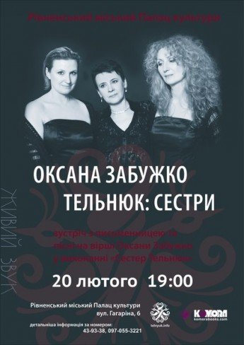 Зустріч з письменницею та пісні на вірші Оксани Забужко у виконанні "сестер Тельнюк".