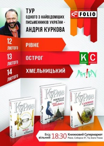 Отож, запрошуємо вас на зустріч із письменником, сценаристом та журналістом АНДРІЄМ КУРКОВИМ, який презентуватиме роман "Львівська гастроль Джимі Хендрікса"