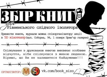 У зв’язку з обмеженим фінансуванням Державної пенітенціарної служби України, адміністрація Рівненського слідчого ізолятора просить надати художню, науково-популярну літературу,оновлені тексти Конституції України, Кримінального, Кримінального процесуального, Кримінально-виконавчого, Цивільного, Цивільно-процесуального кодексів України та коментарів до них,також законів України "Про попереднє ув'язнення", "Про прокуратуру", "Про міліцію", "Про порядок відшкодування шкоди, завданої громадянинові незаконними діями органів дізнання, попереднього слідства, прокуратури і суду",а також безкоштовну річну передплату на журнали та газети в якості гуманітарної допомоги.