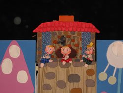 Прем’єра відбулася 17 липня 2005 року Тривалість вистави 40 хв. без антрактуНастала осінь. Троє веселих братиків поросят Ніф-Ніф, Наф-Наф та Нуф-Нуф вирішили побудувати будиночки, аби захиститися від холоду та вітру. Один побудував із соломи, інший — із хмизу і лише, Нуф-Нуф не полінувався та збудував справжній дім з каміння та цегли. А тим часом з лісу з’являється не вельми хитрий, але дуже голодний Вовк. Ой, що далі буде?.. Подивіться, малята, та неодмінно дізнаєтеся.