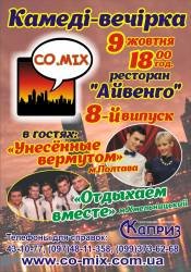 В программе принимают участие резиденты клуба "Co.Mix" - дуэты"Мегаполис" и"Наследники Пушкина", а так же специальные гости - участники высшей лиги КВН, победители телевизионных проектов "Рассмеши комика", "Бойцовский клуб" и др. "Унесенные вермутом"(Полтава) и "Отдыхаем вместе" (Хмельницкий).
