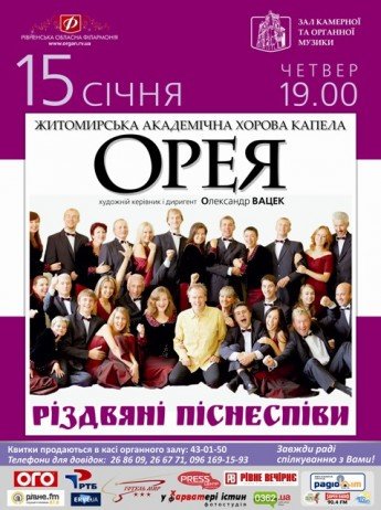 «Різдвяні піснеспіви» Житомирська хорова капела «Орея», художній керівник і диригент Олександр Вацек.