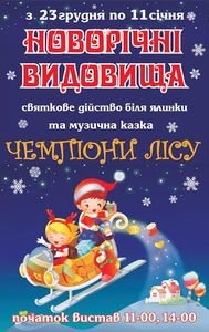 Колектив Рівненського облмуздрамтеатру має честь запросити малят та їхніх батьків на чарівне Новорічне видовище! У театрі на вас чекає святкове дійство біля ялинки з піснями, танцями та конкурсами, а також весела музична казка "Чемпіони лісу". Початок вистав об 11.00 та 14.00. Вартість квитків для дорослих та дітей становить 30 грн.