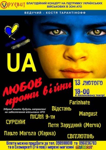 Акустичний рок-концерт, мета якого єдина - допомогти зберегти безцінне життя кожного хороброго воїна! Зібрані кошти, заряди позитивних емоцій та вся ваша любов будуть скеровані на потреби бійців, що зараз в пеклі АТО! Організатор та неймовірно потужна підтримка - БФ "Руєвит"