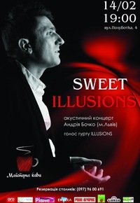 Надзвичайна і мега романтична атмосфера від голосу гурту Illusions (м.Львів) Андрія Бочко чекає на всіх закоханих. "Майстерня кави" подарує Вам відчуття затишку та усамітнення за межами шумного міста. Тут ніхто і ніщо не завадять Вам насолодитися святковою вечерею при свічках у компанії коханої людини на хвилях тихої романтичної музики...