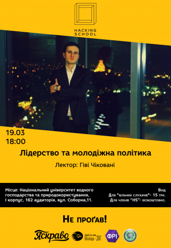 Гіві Чіковані- засновник і генеральний директор компанії «Nx», який має власне телешоу «Nx Speaker» на 6 грузинських каналах і є членом політичної партії ЄНР (Єдиний Національний Рух). Гіві розповість про лідерство як складову соціальної сфери життя людини та про загальні засади молодіжної політики.