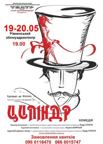 19-20 травня - гастролі Національного театру ім. М. Заньковецької з комедією "Циліндр".