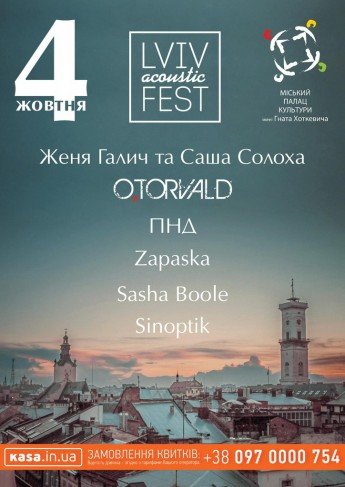 Учасники Lviv Acoustic Fest 2015: Женя Галич та Саша Солоха, гурт Otorvald, Zapaska, Sasha Boole.