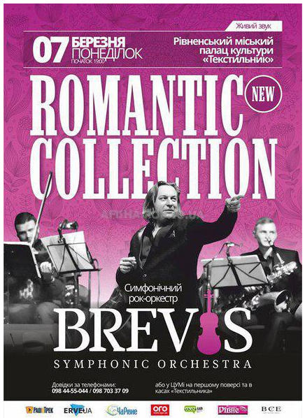 7 березня 2016 року симфонічний рок-оркестр BREVIS презентує рівнянам абсолютно нову програму світових хітів "Романтична колекція".