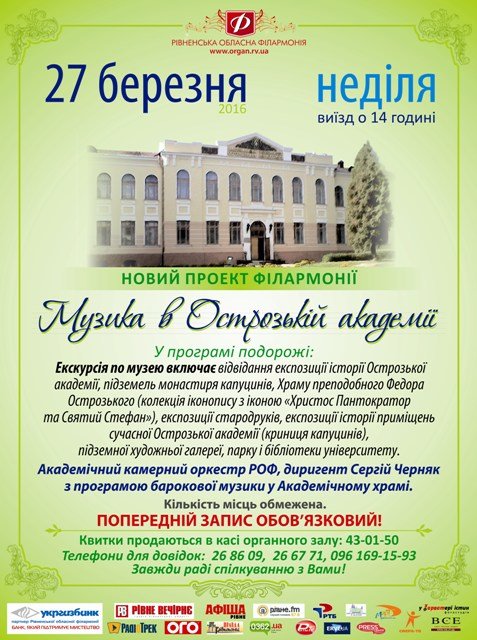 У програмі подорожі: Екскурсія по музею включає відвідання експозиції історії Острозької академії. підземель монастиря капуцинів, Храму преподобного Федора Острозького (колекція іконопису з іконою "Христос Пантократор та Святий Степан"), експозиції стродруків, експозиції історії приміщень сучасної Острозької академії (криниця капуцинів), підземної художньої галереї, парку і бібліотеки університету.