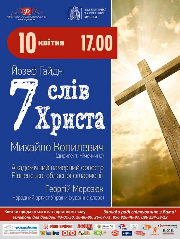 Академічний камерний оркестр Рівненської філармонії, диригент Михайло Копилевич (Німеччина), художнє слово – Ігор Ніколаєв.