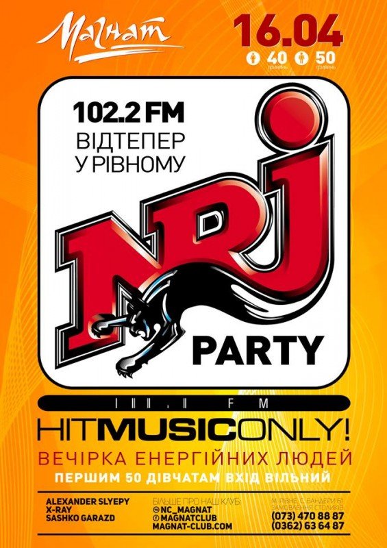 Європейські хіти, улюблені ритми від радіо "NRJ Ukraine"на танцполі нічного клубу Магнат!