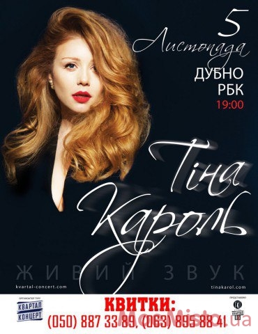Сьогодні Тіна Кароль- взірець талановитості, жіночності та щирості і уже5 листопадавона завітає у м. Дубно, аби потішити своїх прихильників улюбленими піснями.