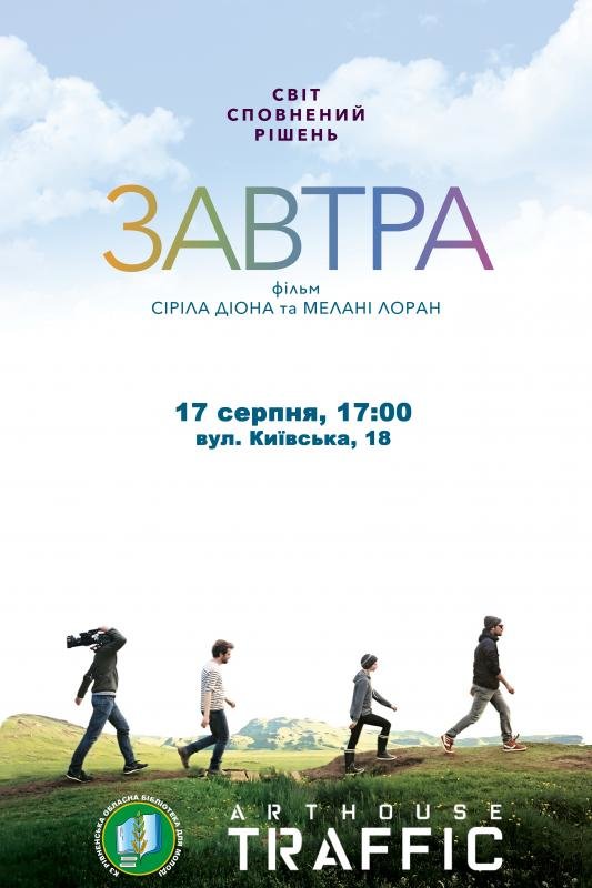 У четвер, 17 серпня, о 17.00 в Рівненській обласній бібліотеці для молоді (вул. Київська, 18) відбудеться перегляд документального фільму «Завтра» (Франція, 2015) від молодого режисера Сіріла Діона за участі французької актриси Мелані Лоран. Знімальна група побуває в 10 країнах світу, вислухає та узагальнить думки різних спеціалістів аби представити, яким буде майбутнє у людства. Ця надихаюча документальна стрічка отримала престижну французьку премію «Сезар» за кращий документальний фільм.