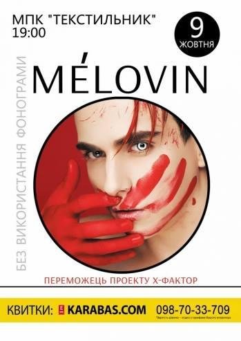 Квитки на сайті karabas.com. У Рівне Melovin дасть концерт 9 жовтня о 19.00 в міському палаці культури. Довідки за тел. 0987033709