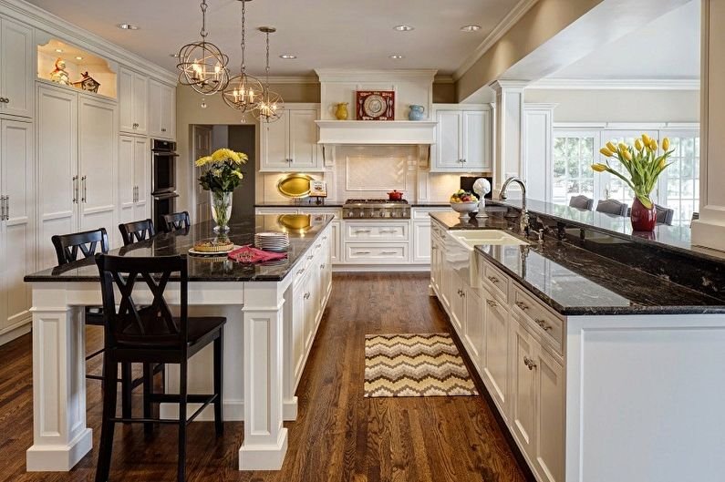 Учитывайте форму. Главное преимущество островной кухни — возможность зонирования пространства. Угловая позволяет рационально использовать квадратные метры, не жертвуя размером рабочей поверхности. Прямая пристенная кухня — вариант для тесных помещений.