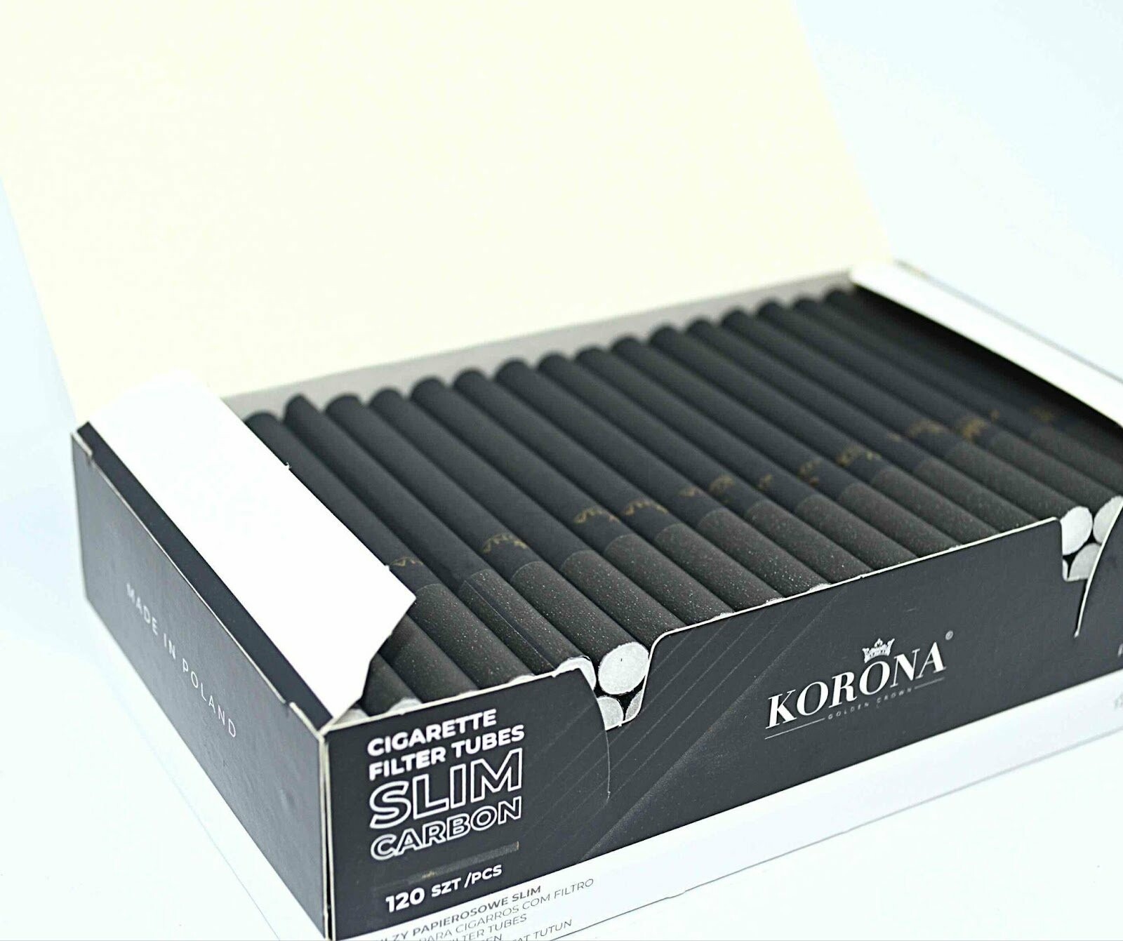 Кольорові гільзи часто бувають у форматі Slim — це тонші, витонченіші гільзи з меншим діаметром (приблизно 6 мм). Їх зазвичай обирають ті, хто хоче зменшити кількість тютюну в сигареті або надає перевагу більш елегантному вигляду. Такі гільзи мають стандартну довжину 84 мм, але завдяки меншому діаметру виглядають більш витончено.
