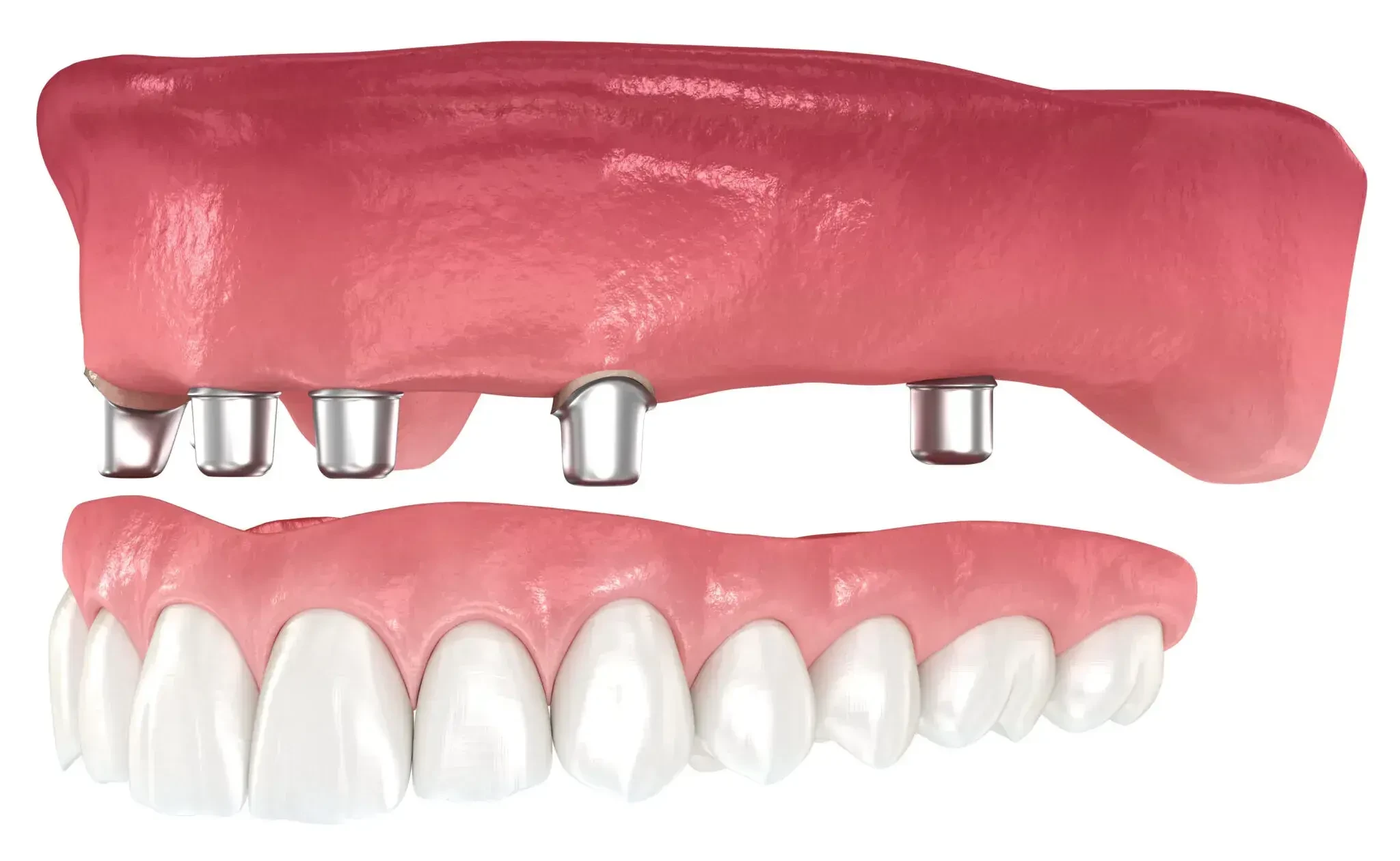 Протезування на імплантатах. Сучасний метод відновлення втрачених зубів. На встановлений імплантат кріпиться коронка або міст, що забезпечує довговічність та стабільність.