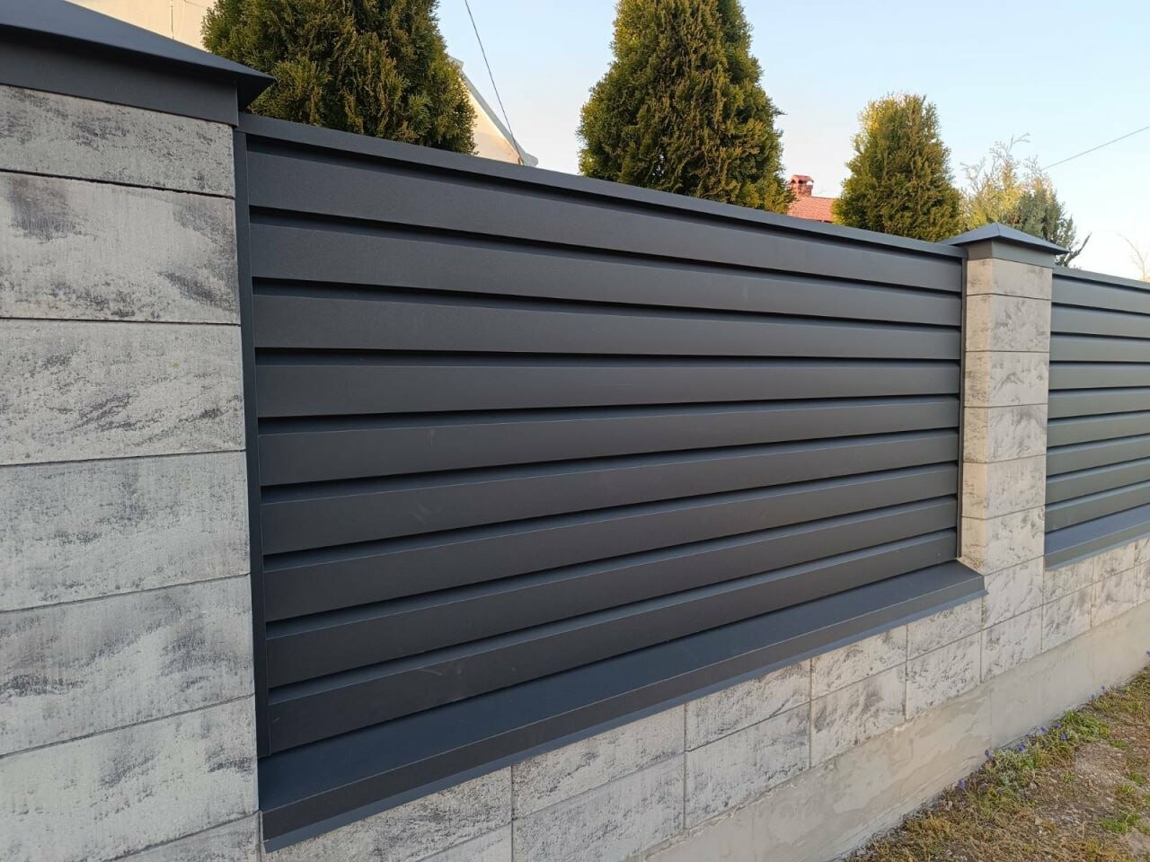 Така огорожа майже не затіняє ані власну, ані сусідську ділянку, адже світло проходить крізь щілини між ламелями. При цьому вона забезпечує високий ступінь приватності для власника, оскільки «жалюзі» створюють глухий ефект, захищаючи від сторонніх поглядів водночас добре пропускаючи повітря.