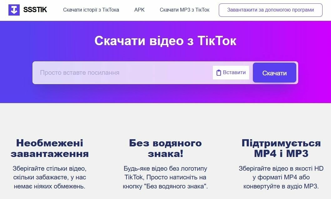 Саме тому багато користувачів шукають спосіб скачати відео з тік току без водяного знаку. Веб-інструмент sssTik допоможе вам швидко скачати відео з тт у високій якості.