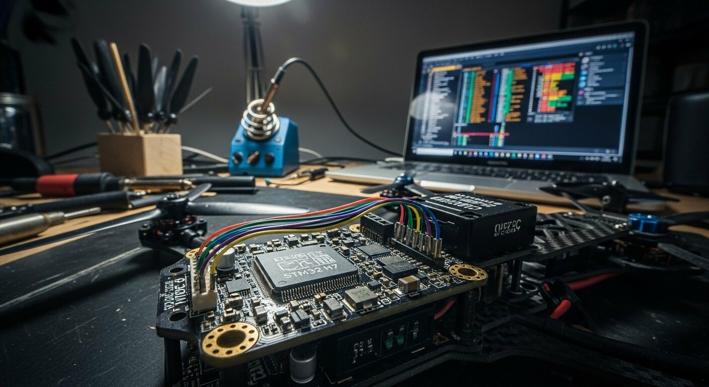 Польотний контролер (Flight Controller, FC) — центральний вузол управління БПЛА, що відповідає за обробку команд пілота, стабілізацію та комунікацію з периферичними пристроями. Еволюція апаратного забезпечення призвела до того, що чіпи F1 та F3 (архітектура 72 МГц) стали історією: сучасні версії прошивки Betaflight 4.x вимагають значно більших обчислювальних потужностей та обсягу пам'яті.