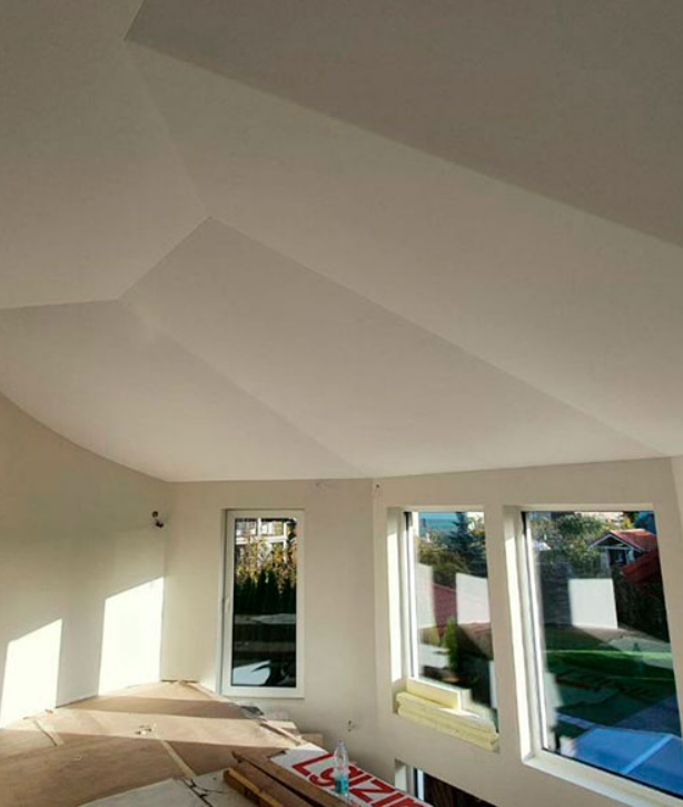 - «Дихання»: Мікроперфорація полотна дозволяє стелі пропускати повітря, запобігаючи утворенню грибка та забезпечуючи здоровий мікроклімат.