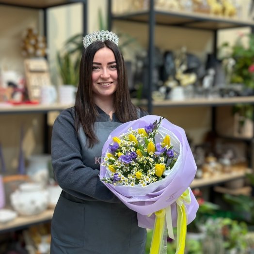 Для юних дівчат зазвичай добре працюють квіти, які асоціюються з весною — ніби все тільки починається. Тут не хочеться «важких» композицій або надто строгих форм.