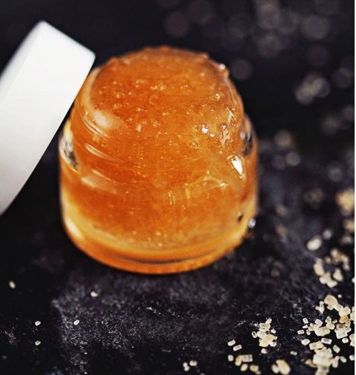 Змішайте всі складові разом в невеликій мисці, розмішайте до стану пасти. Нанесіть на губи кінчиками пальців і помасажуйте, щоб м'яко відлущити сухі частинки, мертві клітини шкіри. Ви будете спокушатися з'їсти суміш - на смак вона невимовно солодка! Змийте теплою водою, а потім скористайтеся звичайним бальзамом для губ. Тримайте скраб в невеликому контейнері.