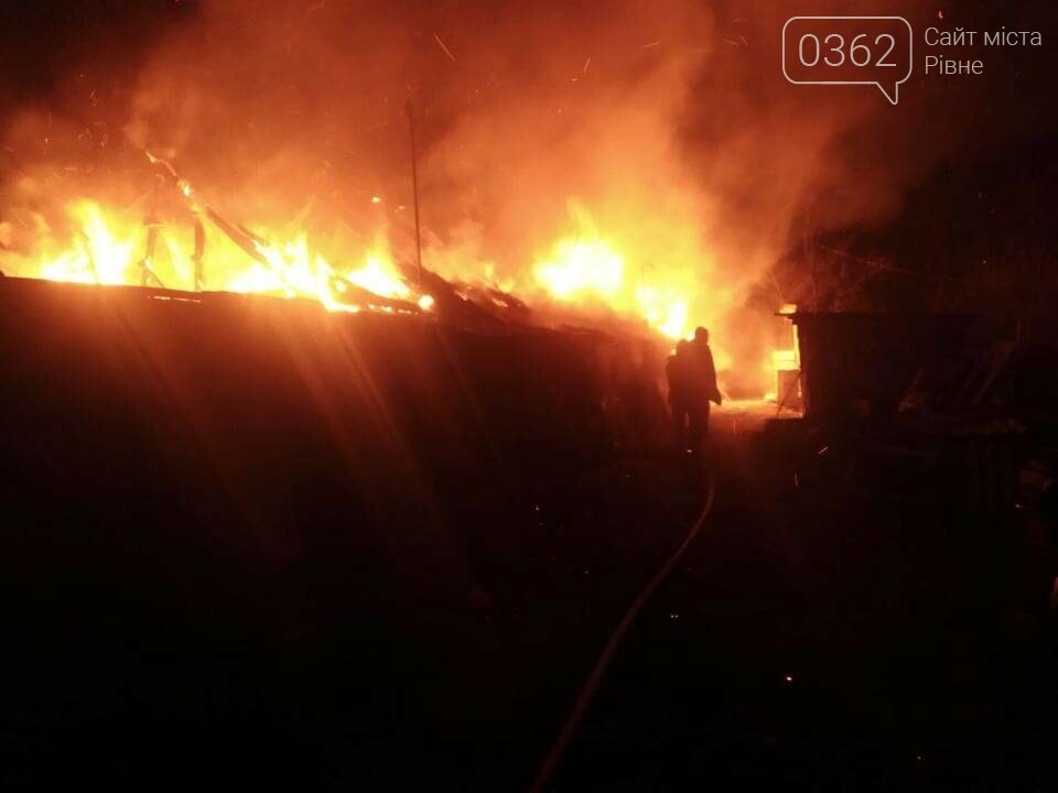 Полум’я було такої сили, що загрожувало перекинутися на інші поряд розташовані господарчі будівлі. Тому вогнеборці подали вогнегасячі засоби безпосередньо на ліквідацію пожежі, а також на захист суміжних господарчих будівель. Значно ускладнювало роботу рятувальників висока температура, сильне задимлення, а також велика кількість горючих матеріалів, що знаходилися у різних приміщеннях господарчої будівлі. О 20:22 пожежу вдалося локалізувати, а о 23:24 повністю ліквідувати. Серед громадян жертв та постраждалих не має. Врятовано одне приміщення та чотири тварини. До ліквідації пожежі було залучено 4 одиниці техніки ДСНС та 18 рятувальників. Причина пожежі та розмір збитків встановлюються, - повідомляє ГУ ДСНС у Рівненській області.