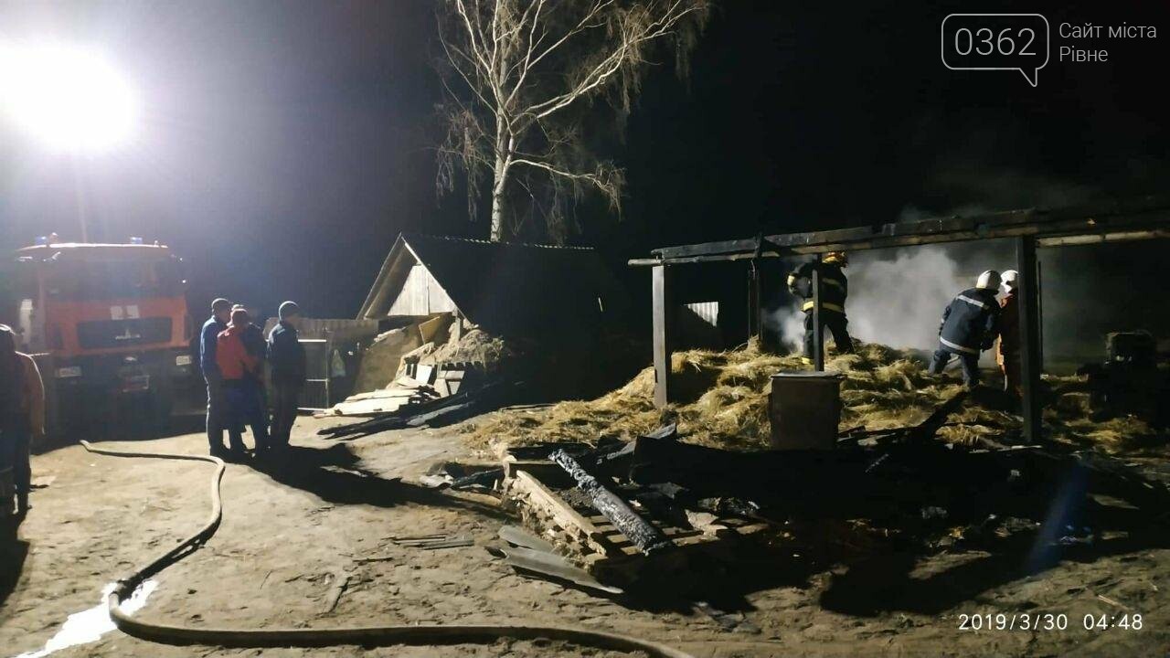 Як повідомляє ГУ ДСНС України в Рівненській області, горіла господарська будівля вже до 5.30 пожежу ліквідували. Внаслідок пожежі вогонь знищив господарську будівлю. Гасили пожежу чотири вогнеборці на на одній одиниці спецтехніки. Наразі причини та збитки від пожежі встановлюються.