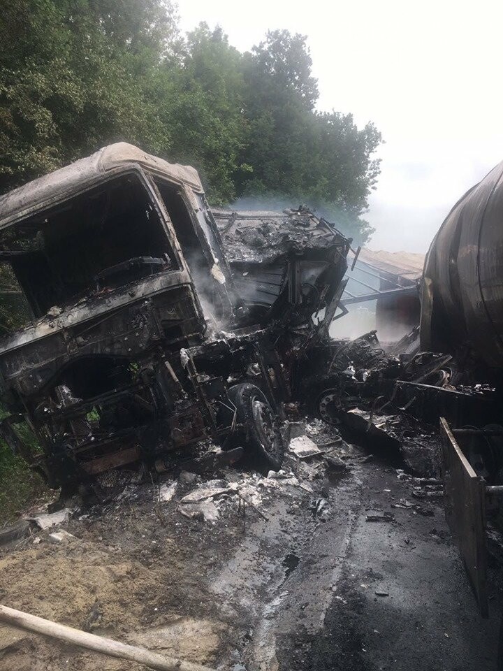 О 12:50 пожежу вдалося локалізувати, а о 14:05 ліквідувати. Внаслідок ДТП два водія травмовано, один вантажний автомобіль згорів та частково пошкоджено інший. Наразі обставини даної пригоди з’ясовують поліцейські, - повідомляє ГУ ДСНС у Рівненській області.
