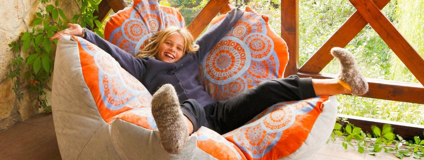 - сядьте в крісло-мішок, і відчуйте, як розслабляються м'язи спини і ніг, як витягується хребет. Ефект релаксу-головне достоїнство таких меблів. Мішок моментально "підлаштовується" під форму тіла сидячого. Крім того, спинка крісла підтримує хребет. Якщо безкаркасне крісло виготовлене за всіма правилами, воно сприяє поліпшенню самопочуття користувача;