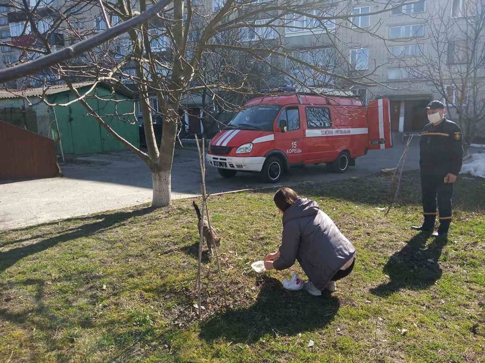 Учора, 20 березня на лінію "101" надійшло повідомлення від жительки міста Корець про те, що на непрацюючій водонапірній башті, що розміщена поблизу 120-ти квартирного житлового будинку по вулиці Володимирській на технічному майданчику водонапірної башти вже два дні нявчить котеня та не може самостійно спуститися до низу.